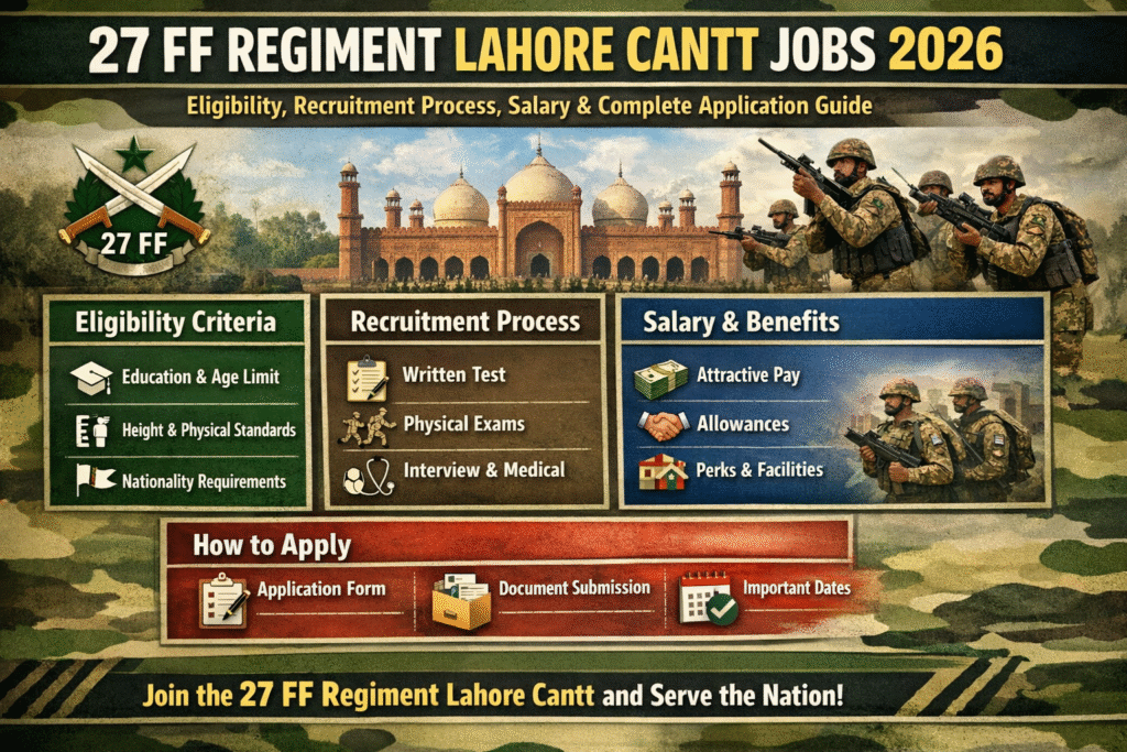 27 FF Regiment Lahore Cantt Jobs 2026 provide a respectable and secure career path for candidates seeking civilian employment under a Pakistan Army unit. With disciplined procedures, stable salaries, and a professional environment, these jobs remain highly desirable.